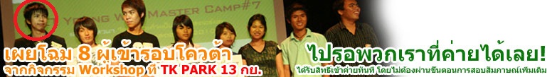 ตอนนั้น เขามีสอบนอกรอบรับพิเศษ 8 คนใครก็ได้ที่มาที่ TKPark จะสามารถสมัตรสอบเข้าก่อนรอบโคต้าได้